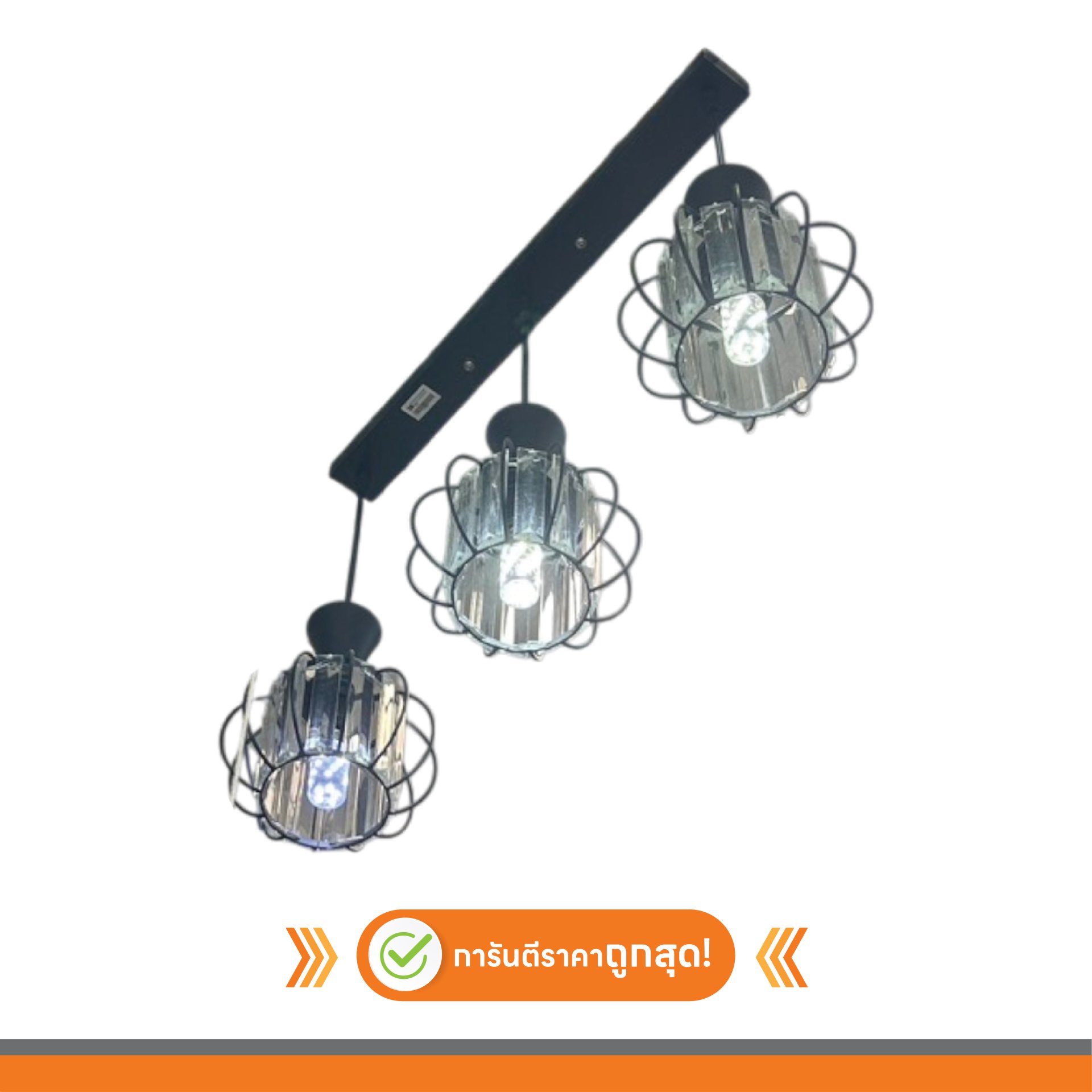 โคมไฟแขวนเพดาน สีดำแบบยาว 3 ช่อ NO.20