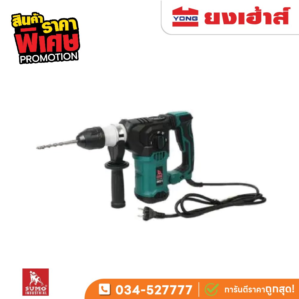 4. ความเร็วรอบและความเร็วกระแทกเหมาะสม – มีความเร็วรอบประมาณ 950 รอบ/นาที และอัตราการกระแทกประมาณ 4300 ครั้ง/นาที ช่วยให้การเจาะมีความต่อเนื่องและมีประสิทธิภาพ